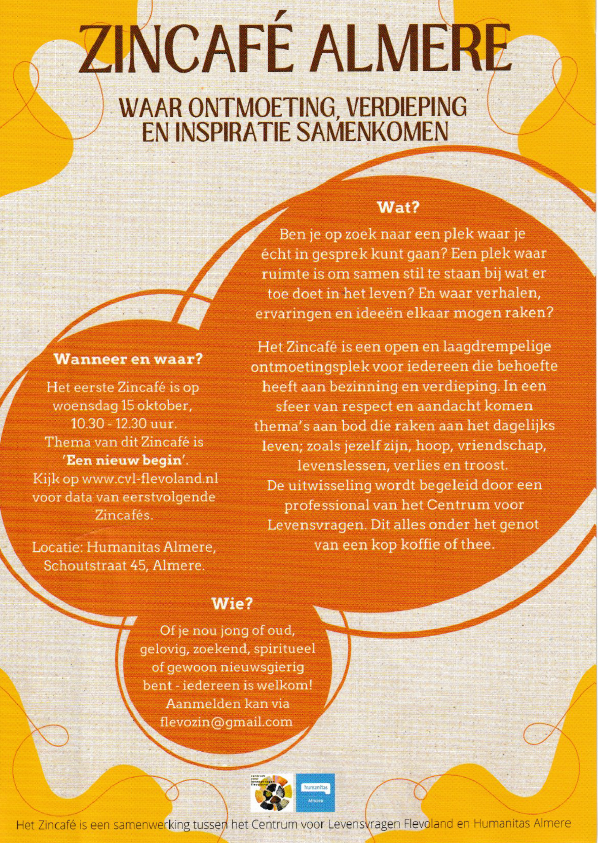15 oktober 10.30-12.30 uur Zincafé Almere