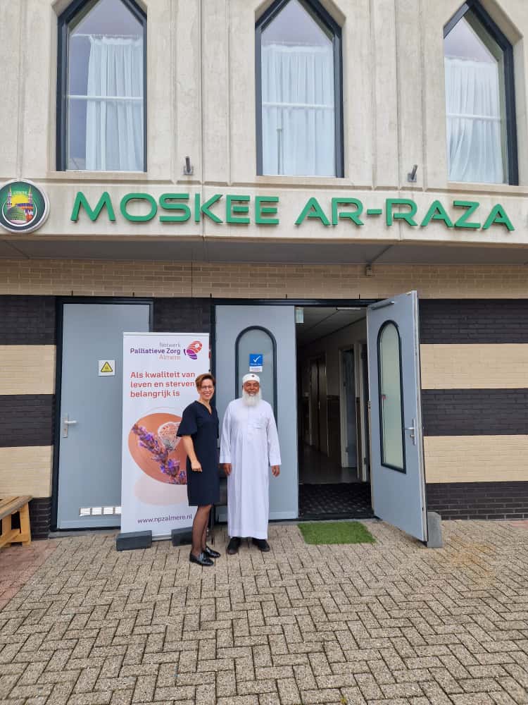 Dinsdag was het symposium Interculturele palliatieve zorg. Geheel in lijn met dit thema was de locatie van de avond de Ar-Raza moskee, waar zo’n 100 deelnemers gastvrij ontvangen werden. We startten met een heerlijk intercultureel buffet, verzorgd door Eethuisje Mia. Dat eten verbindt, werd bevestigd door de vele gesprekken die tussen de diverse collega’s uit de regio ontstonden.
