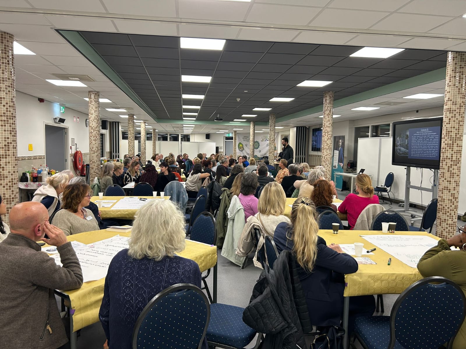Dinsdag was het symposium Interculturele palliatieve zorg. Geheel in lijn met dit thema was de locatie van de avond de Ar-Raza moskee, waar zo’n 100 deelnemers gastvrij ontvangen werden. We startten met een heerlijk intercultureel buffet, verzorgd door Eethuisje Mia. Dat eten verbindt, werd bevestigd door de vele gesprekken die tussen de diverse collega’s uit de regio ontstonden.